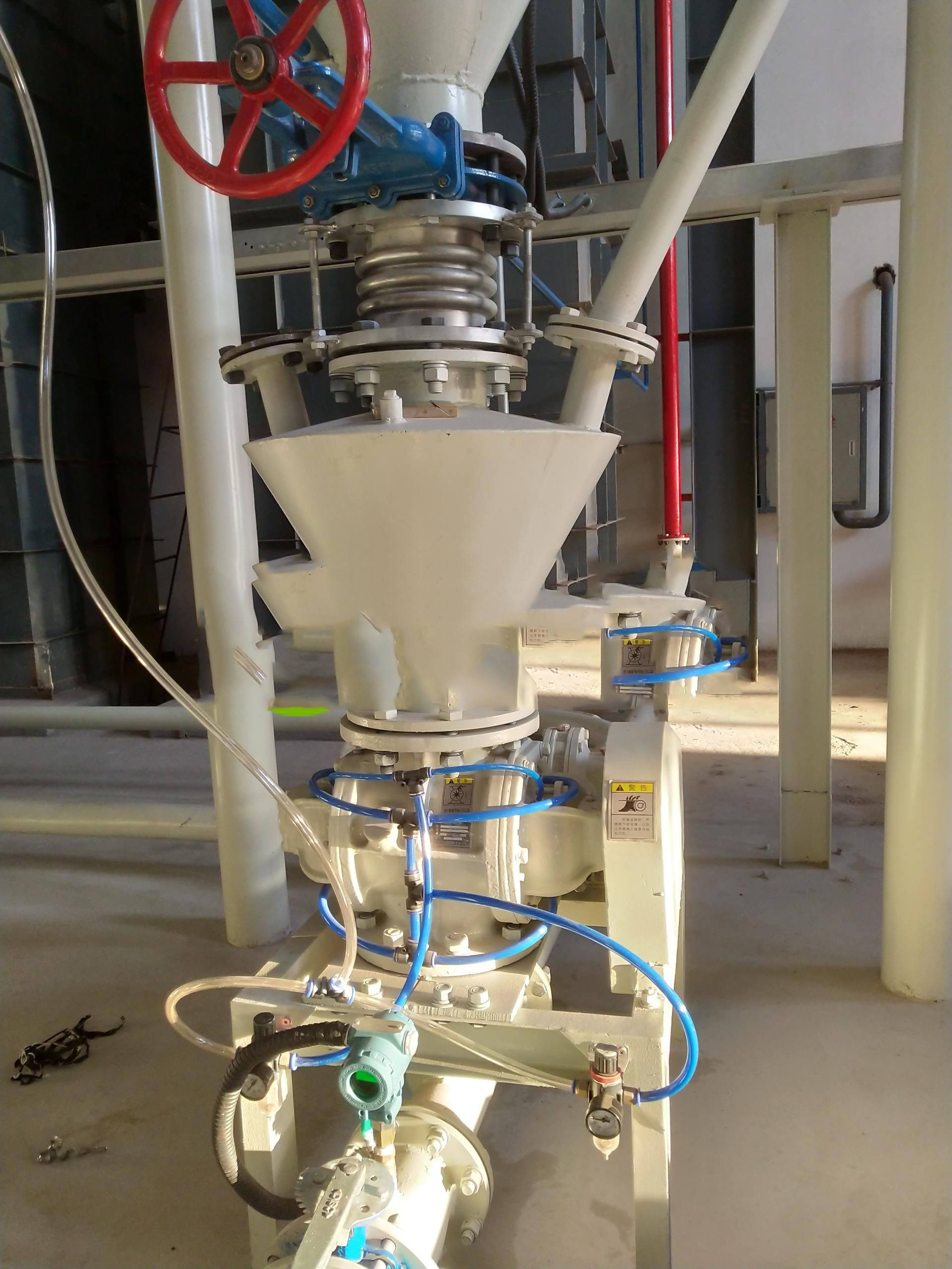 旋轉(zhuǎn)供料器的卸料量影響著氣力輸送的輸送量,在這個項目中我們甚至?xí)ㄟ^旋轉(zhuǎn)供料器的減容來達到減少輸送量。