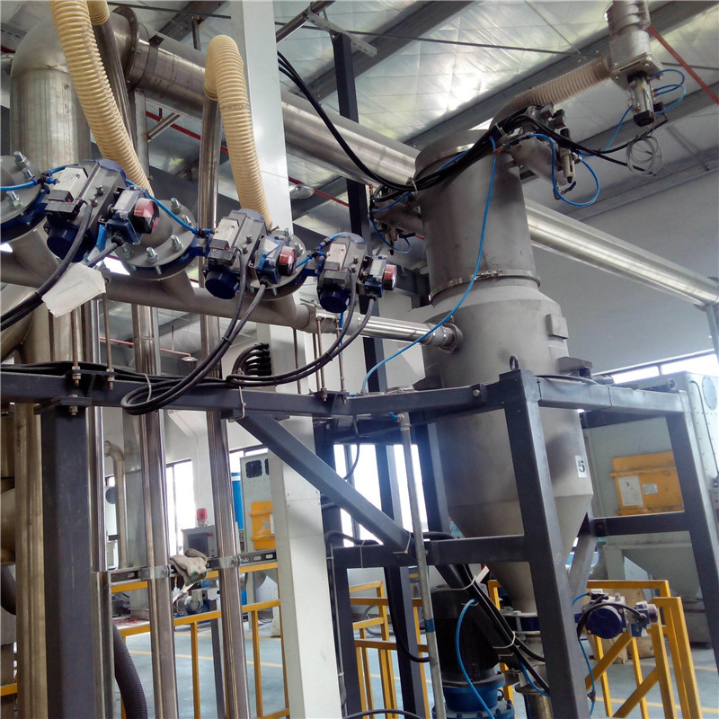 多組份吸料計(jì)量稱,主要由截氣閥、過濾器、進(jìn)料閥組、稱重模塊、脈沖反沖裝置、卸料閥、儲(chǔ)料倉等組成。多組份吸料計(jì)量采用負(fù)壓平衡技術(shù),通過真空負(fù)壓將物料吸到儲(chǔ)料倉內(nèi),在吸料的同時(shí)對物料進(jìn)行計(jì)量,根據(jù)物料(粉末)的流動(dòng)性,可增設(shè)破拱裝置以助流,可以最多20個(gè)管道同時(shí)接入該計(jì)量稱進(jìn)行計(jì)量。精度:±200g或±3‰