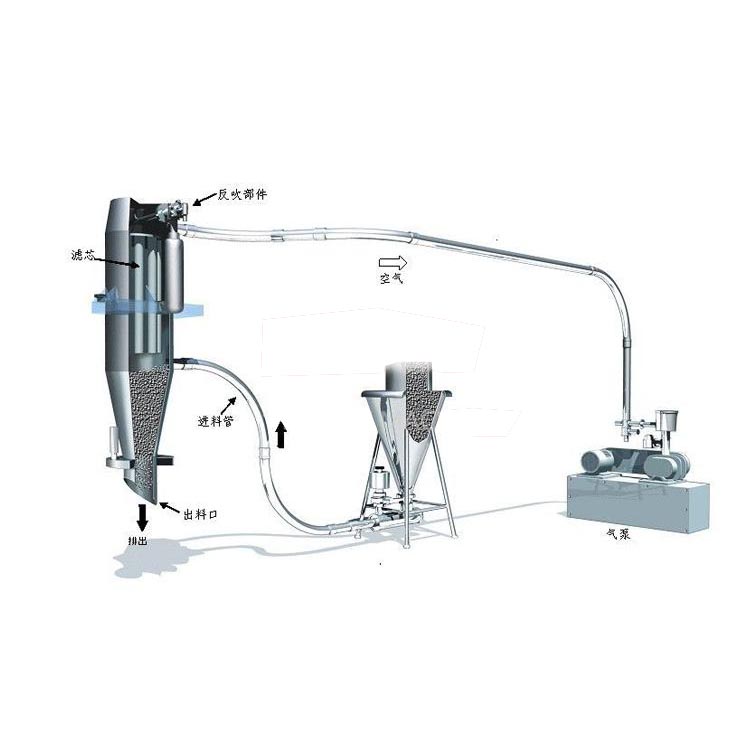 真空上料機可配重力閥、插板閥、碟閥、旋轉閥等構成輸送系統。